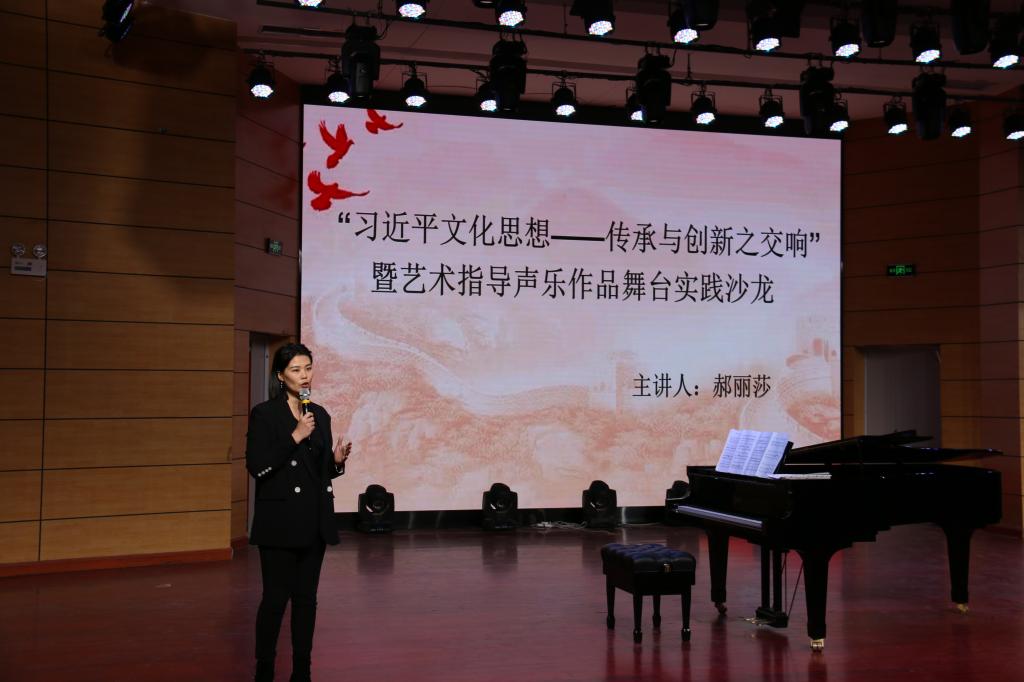 《“习近平文化思想——传承与创新之交响”暨艺术指导声乐作品舞台实践沙龙》是由威廉希尔官网郝丽莎老师主讲,立足艺术指导课程思政视域,聚焦古典文化诗词、红色经典曲目、民族传统歌曲在新时代的美育传播路径,通过创意沙龙形式普及声乐体验艺术、丰盈美育受众群体,致力于推动“中华优秀传统文化创造性转化、创新性发展”。