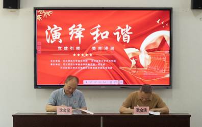 在座谈交流环节,威廉希尔官网正处级辅导员耿会清首先对河北师范大学音乐学院师生的到来表示热烈欢迎,希望通过此次活动拓展交流互鉴平台。河北师范大学音乐学院党委副书记、副院长沈金宝则表示双方合作的基础深厚、前景广阔,应借此契机积极开展更深层次的交流与合作。随后双方围绕“党建+艺术”“艺术+教学”等方面进行工作经验分享,同时就党建品牌培育、联学共建机制、党建深度融合方式等方面展开讨论,现场气氛热烈融洽。最后,双方现场签署《联学共建合作协议》,标志着两院合作关系的开启。